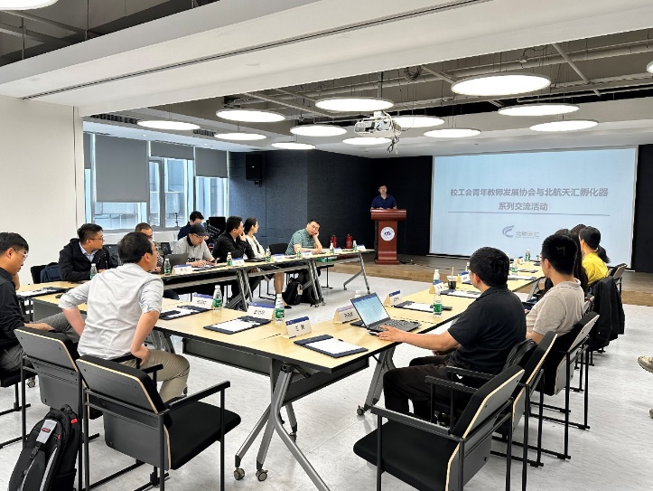 活动由北航校工会青年教师发展协会会长杨明轩主持。此次活动作为我校青年教师社会实践的一部分,旨在促进各学科老师更好地开展交叉创新合作,通过协同天汇孵化器、校友投资机构及企业,共同探讨创新驱动、产研融合和科研成果转化,促进我校青年教师科研及教学发展,提升服务学校建设和服务社会经济发展的能力。