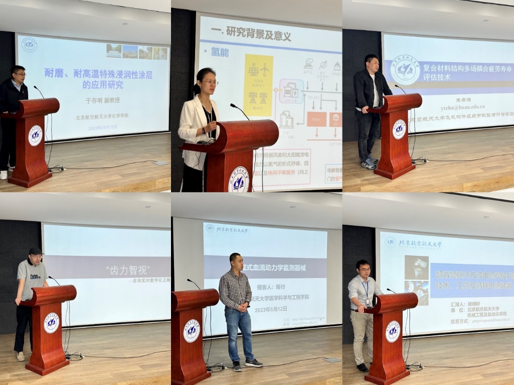 在技术成果分享环节,化学学院于存明副教授,交通科学与工程学院宋凌珺副教授、朱云涛副教授,生物与医学工程学院李介博副研究员,医学科学与工程学院陈行副研究员、机械工程及自动化学院杨明轩副教授分别介绍了技术特点及应用推广成果,并提出了创新交叉合作需求。