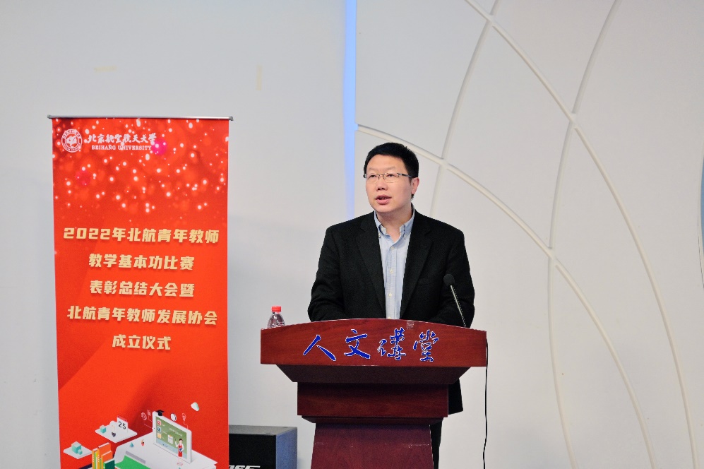 副校长吕卫锋在大会上发表讲话。他代表学校对青教赛获奖教师以及青年教师发展协会的成立表示祝贺,对青教赛在提升学校师资队伍水平和课堂教学质量方面做出的贡献给予了充分肯定。他指出,高水平的青年教师队伍是高质量教育体系的关键支撑,也是一所大学的核心竞争力。他希望北航青年教师发展协会能当好学校党委团结广大青年教师的桥梁纽带,及时充分听取广大青年教师的心声,配合学校各部门工作落实对青年教师的关心关爱,为青年教师多办事、办实事,真正把青年教师凝聚起来;同时当好青年教师沟通交流、施展才华的重要舞台,在青年教师中营造立德树人、教书育人的良好氛围,为青年教师快速发展与成长创造更加有利的条件。