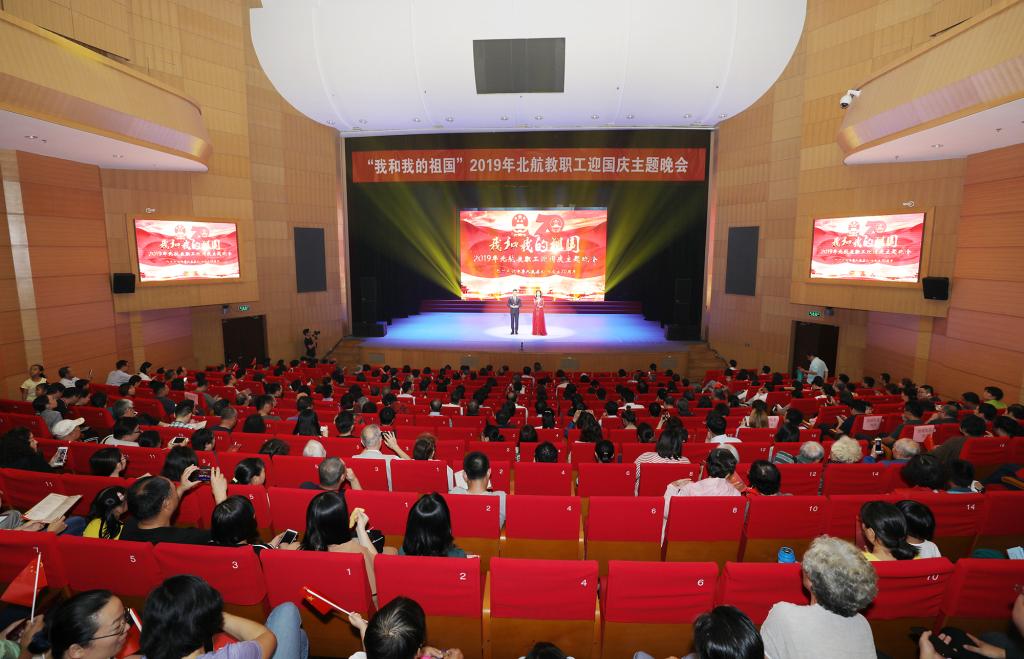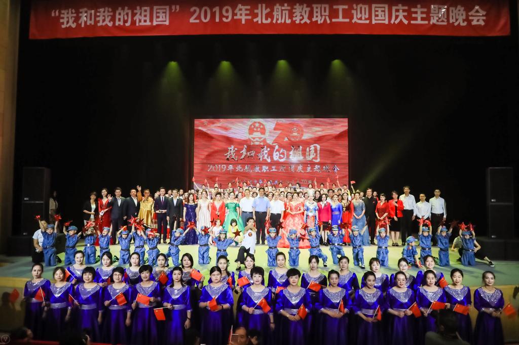 北航新闻网9月30日电(通讯员 张芳/文 记者 邸白鹭 郑春杰/摄影)9月29日,在新中国即将迎来七十华诞之际,由校工会主办,宣传部协办的“我和我的祖国”——2019年北航教职工迎国庆主题晚会在晨兴音乐厅举行,来自20多个部门工会的300余名教职工参加了演出。