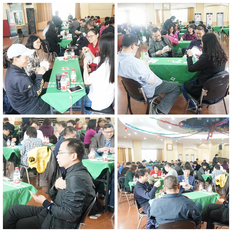 比赛当天,教职工们以牌会友,激烈角逐,对阵双方比牌技、比智慧,比合作、赛成绩、赛友谊。现场气氛融洽,欢声笑语不断,达到了融合感情、加强交流、活跃氛围的活动目的。