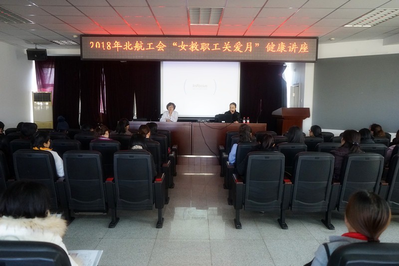 为维护女教职工的身心健康,提升女教职工的健康意识,对女性疾病早发现、早预防及早治疗,营造更加快乐、幸福的生活,校工会与校医院联合举办了2018年北航工会“女教职工关爱月”系列活动之健康讲座。讲座邀请了国家癌症中心、中国医学科学院肿瘤医院妇瘤科主任医师李淑敏大夫和校医院中医副主任医师贾绍燕大夫主讲,于2018年3月15日下午在校医院四层报告厅顺利举行。工会副主席杨瑞静介绍了2018年工会“女教职工关爱月”系列活动,校医院副院长曹丽娟、工会主席刘岩介绍了校医院妇幼健康保健方面所作的工作。