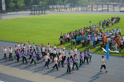 在运动会入场式中,二十七个方阵各显其能,奉献了一场视觉盛宴,场面轻松诙谐,热烈祥和,让人们看到了广大教职工充满活力的一面,也感受到各个单位的融洽、团结、积极向上的精神风貌。