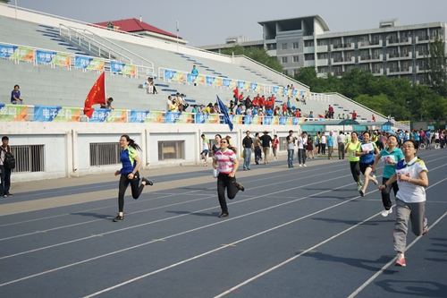 比赛项目于9:45正式开始,校党委常务副书记张维维为男子100米决赛项目发第一枪,场面顿时沸腾起来。本届运动会以“忆童年,快乐当道,青春正好”为主题,精选了满载儿时美好回忆的竞赛项目,在随后进行的滚铁环、托球跑、毽球接力、沙包攻守大战、跳大绳等趣味项目中,各单位教职工集体合力,精诚团结,妙趣横生;在100米飞人大战、400米、实心球、跳远、4*100米混合接力等竞技项目中,广大教职工矫健的身手也展现得淋漓尽致;没有竞技项目的教职工纷纷参与到“嘉年华闯关专区”计时投篮、跳绳、沙包掷准等活动中,真正体现运动的普惠性和参与性,比赛于11:45全部结束。