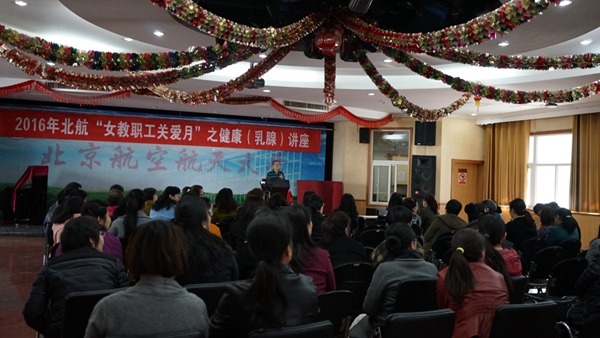 为增进女教职工的身心健康,使广大女教职工在紧张忙碌的工作之余,关注乳房健康,对乳腺疾病早发现、早预防及早治疗,营造更加快乐、幸福的生活,校工会于2016年3月25日举办了2016年北航“女教职工关爱月”系列活动之健康(乳腺)讲座。本次讲座有70余位女教职工参加,校工会邀请了北医三院的乳腺专家雷玉涛主大夫主讲。雷大夫有丰富的临床经验,在整个讲座过程中, 雷大夫用平实的语言对乳腺癌的检测、治疗以及日常的护理,进行了图文并茂的讲解和答疑。雷大夫的报告得到了现场女教职工的普遍认可和回应。