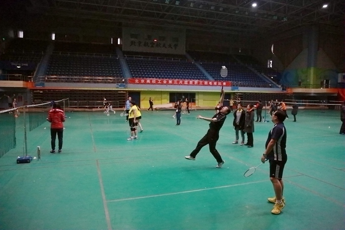 为积极备战2015年北京市教育系统“职工互助保障杯”教职工羽毛球团体赛,做好高校工会第三片组参赛队伍的选拔工作,2015年11月19日,北京市高校工会第三片组教职工羽毛球赛在北航体育馆主馆成功举行。