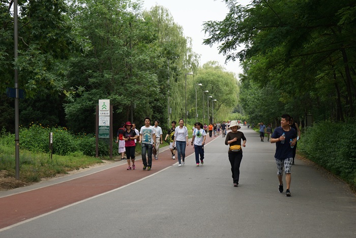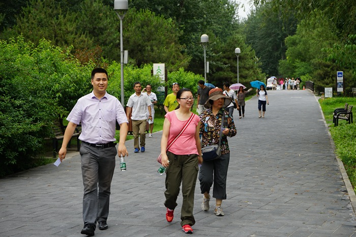 16:00,北航教职工陆续乘坐地铁抵达位于奥林匹克森林公园南门的会务点,领取通关卡后,沿着公园3公里步行道展开阔步走。活动当天气温凉爽宜人,公园景色秀丽,锻炼的人群浩浩荡荡,北航教职工也受到感染,自觉融入运动的海洋,欢声笑语洒满一路,暂时抛却工作生活中的压力。