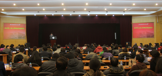 1月10日上午,2013年学校工会工作研讨及总结会在如心会议中心大报告厅召开,校党委书记胡凌云,党委副书记张维维,纪委书记、工会主席纪素菊,校工会、部分机关部处负责人,各分党委(党总支、直属党支部)书记,校教代会主席团成员,各部门工会主席、工会委员、工会工作积极分子代表150余人出席会议。会议由校工会常务副主席程文浩主持。