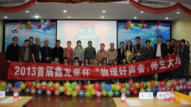 为了进一步推进物理学院文艺活动的蓬勃发展,营造良好的校园文化氛围,丰富全院师生的校园生活,促进导学关系融洽,激励同学们发扬“爱国、进步、民主、科学”的五四精神,积极向上,乐观进取,为实现国家富强、民族复兴、人民幸福、社会和谐的中国梦而努力学习与工作,同时也为在4月20日四川省雅安地区地震中的受灾同胞祈福,学校工会与物理学院工会、研究生会、学生会以及研究生SY1119党支部近日在思源楼多功能厅共同举办了首届“物理好声音,师生大斗唱”活动。学校相关部门和物理学院的众多老师、学生参加和观看了整场演唱活动。