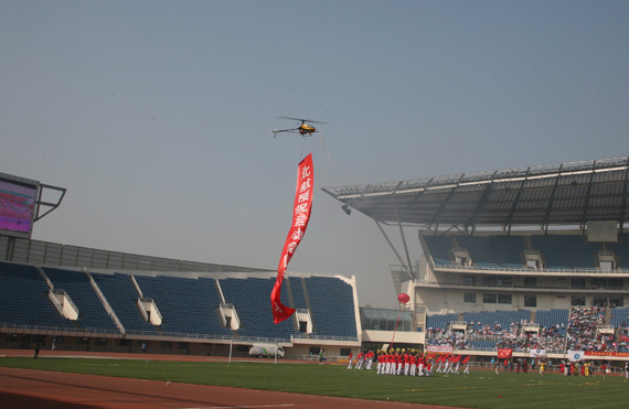 我校太极拳队伍、广播操队伍参加了本次田径趣味运动会开幕式表演,由学生鼓队、舞狮队、航模队组成的表演团体作为开幕式上九个展演方阵之一参加了展演。