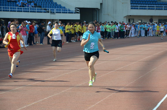 5月26日,2012年首都教育系统教职工运动会田径趣味竞赛在奥林匹克体育中心成功举办。我校纪委书记、工会主席纪素菊担任总领队,并作为运动员亲自参加了比赛项目,70余名教职工组成了参赛队伍,经过一整天紧张激烈的拼搏,我校代表队获得了田径趣味项目高校甲组团体总分第五名的好成绩。