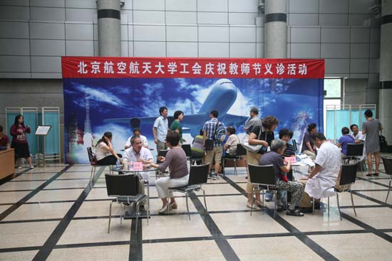 9月7日下午,为全面实施 "健康工程",促进全校教职员工的身体健康,体现“关注健康、幸福生活、快乐工作”的宗旨,在教师节、中秋节即将来临之际,校工会、校医院邀请北医三院、中医大附属医院专家在如心会议中心四季厅为教职工义诊。