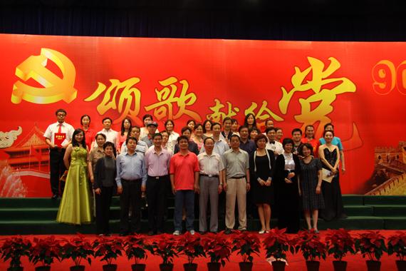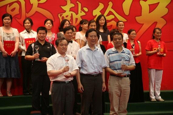 校党委书记胡凌云,党委副书记张维维,纪委书记、工会主席为获奖的单位颁发了奖杯和证书,最后,全场观众和工作人员共唱《没有共产党就没有新中国》,英国上市公司365庆祝中国共产党成立90周年“颂歌献给党”教职工合唱比赛在昂扬的音乐声中圆满落幕。