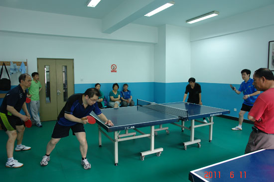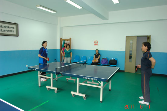 2011年6月11日,校工会在我校思源楼乒乓球室,举办了第三届“教授杯”乒乓球比赛,共有40余名具有副高职以上职称的教职工参赛。本届比赛以“我参与、我快乐”,为宗旨,参赛的教师们在竞争中得到了快乐。