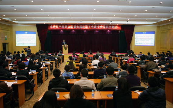 怀进鹏校长在会议上作了题为《把握机遇,凝心聚力,全力提升北航办学能力》的工作报告。他结合国际高等教育发展的历史和新的形势,深刻分析了高等教育和科技方面的竞争愈来愈激烈的全球化背景下,学校的发展在当前面临的机遇、挑战以及学校肩负的社会责任。他指出,我们要客观的认识我们的实力、找到我们的差距,围绕我们的历史使命,转变发展思路,育人为本,学术至上,向着空天信融合特色的世界一流大学的目标迈进,进一步提高学校在国际上的竞争能力。我们要抓住“十二五”规划和“国家中长期教育改革和发展规划纲要”的重要机遇,动员全校教职工的力量,服务于学校培养人才、建立一流学科、科技创新、师资队伍建设、加快国际化发展的基本任务,在办学资源、现代大学制度、安全稳定方面做好保障,希望全校教职工凝心聚力、锐意进取,努力做好学校各项重点工作,为我校各项事业发展贡献智慧和力量。