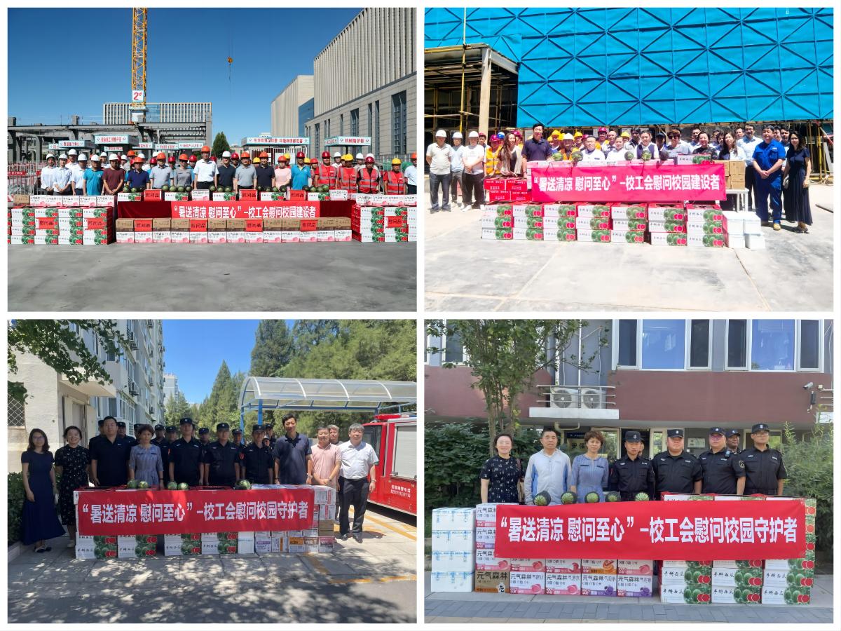 6月24日上午,校工会开展“暑送清凉 慰问至心”暑期慰问活动,分别对两校区工地建设者、校园安保人员等在岗教职工进行了慰问。
