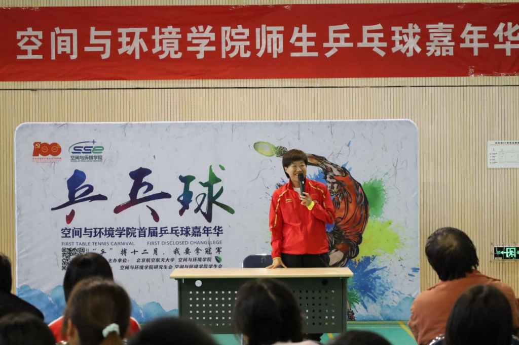 小小的乒乓,旋转的青春。为强健师生体魄,传承乒乓文化,发扬国球精神,12月15日下午,空间与环境学院工会联合研究生会、学生会在沙河校区体育馆三层举办“‘乒’搏十二月,我要拿冠军”首届乒乓球嘉年华活动。活动邀请了国乒世界冠军、北航体育部教师郭焱和省队名将、北航教职工女单冠军张平加盟。学院全体师生参加活动。