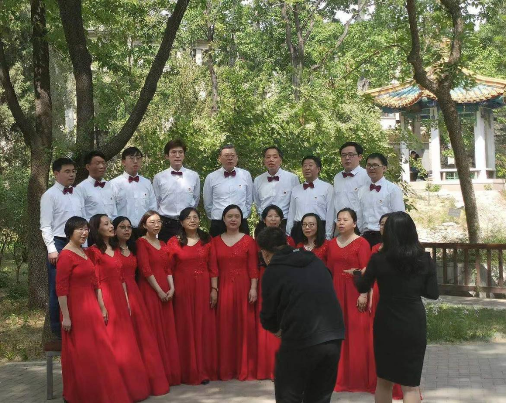 随后,老师们又在学院路校区各标志性建筑区域进行外景的排练与拍摄工作。各位老师们利用宝贵的午休时间,积极尝试各种队形和取景,收获了很多漂亮的镜头资料。最终,在专业人员的协助下,全部影音资料被剪辑成两段精彩的合唱视频,用于参加比赛。