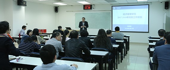 接着,刘志新书记作了学院财务工作报告。报告中对学院2017年度财务收支情况和各部门2018年财务预算进行了详细说明。刘志新书记就学院各中心和职能部门的2017年度预算执行情况以及学院经费收入支出情况逐条详细地进行了说明,并对2018年度预算编制的依据、基本原则和程序作了具体解释。