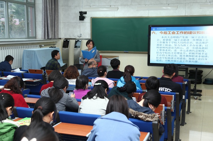 上届工会主席燕晖同志作了题为《凝心聚力促发展 砥砺前行谱新篇》的工会工作报告。她对上一届工会委员们的辛勤付出表示了感谢,全面回顾了六年来工会开展的主要工作:一是加强工会自身队伍建设,规范了工会工作;二是加强人文关怀,强化服务功能;三是和谐进取,举办了多项特色鲜明的文体活动;四是校务公开,发挥了教职工的民主监督作用,保障了教职工权益,努力形成人文关怀新常态。她指出六年来学校工会的成绩是在北航大学工会以及实验学校党委的正确领导下,在所有工会委员及教职工们的支持和努力下取得的。她希望新一届工会:进一步增强工会工作服务于学校大局的意识,依法维护教职工权益,努力为教工多办实事;进一步完善教代会制度,提高学校民主管理水平;积极开展丰富多彩的文体活动,提升教师幸福感,加强工会自身建设,不断开创工会工作新局面。