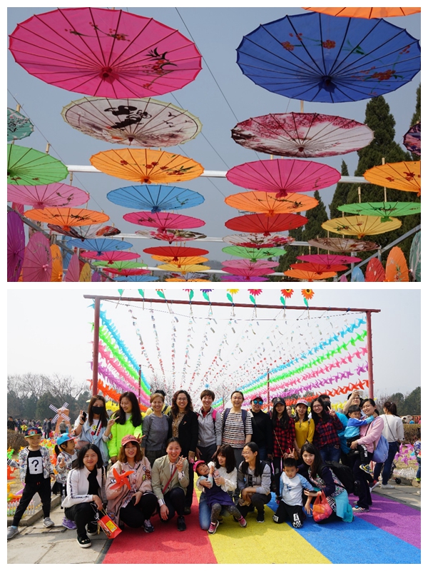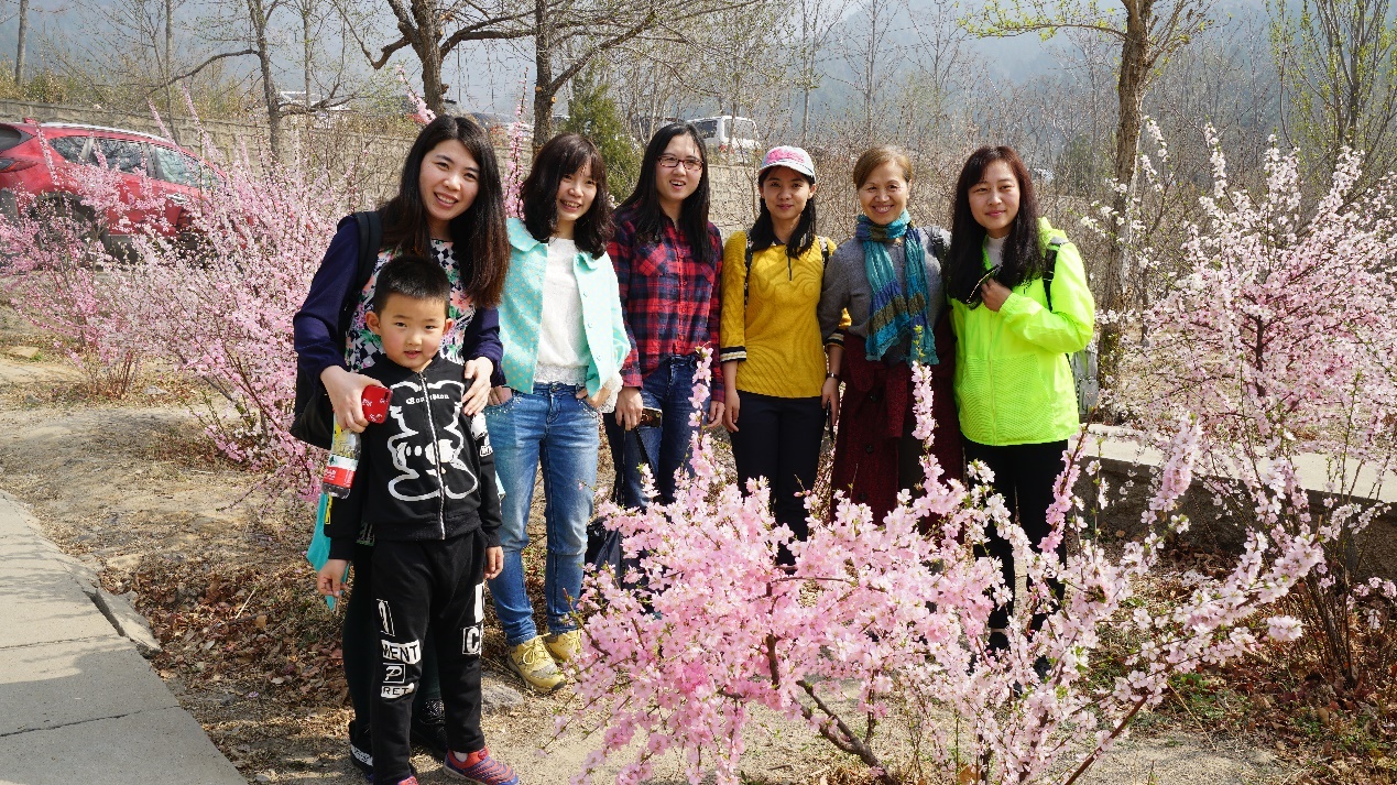 从停车场出来去往风车节的小路上,桃花摇曳,女老师们的心情也格外的好。