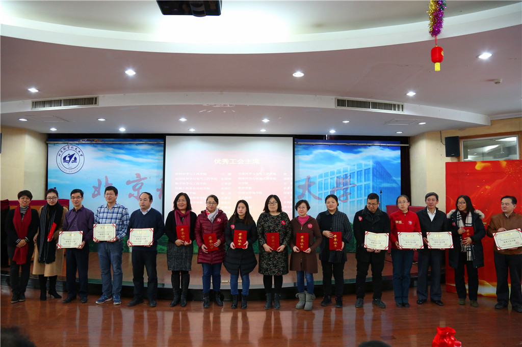 1 月12日下午,学校工会在思源楼举行了2017年度工会工作表彰大会,对先进集体和个人进行了表彰,颁发了奖牌和荣誉证书。学校副校长、校工会常务副主席、机关部处有关领导、部门工会主席和委员以及获得奖励的个人参加了表彰大会。