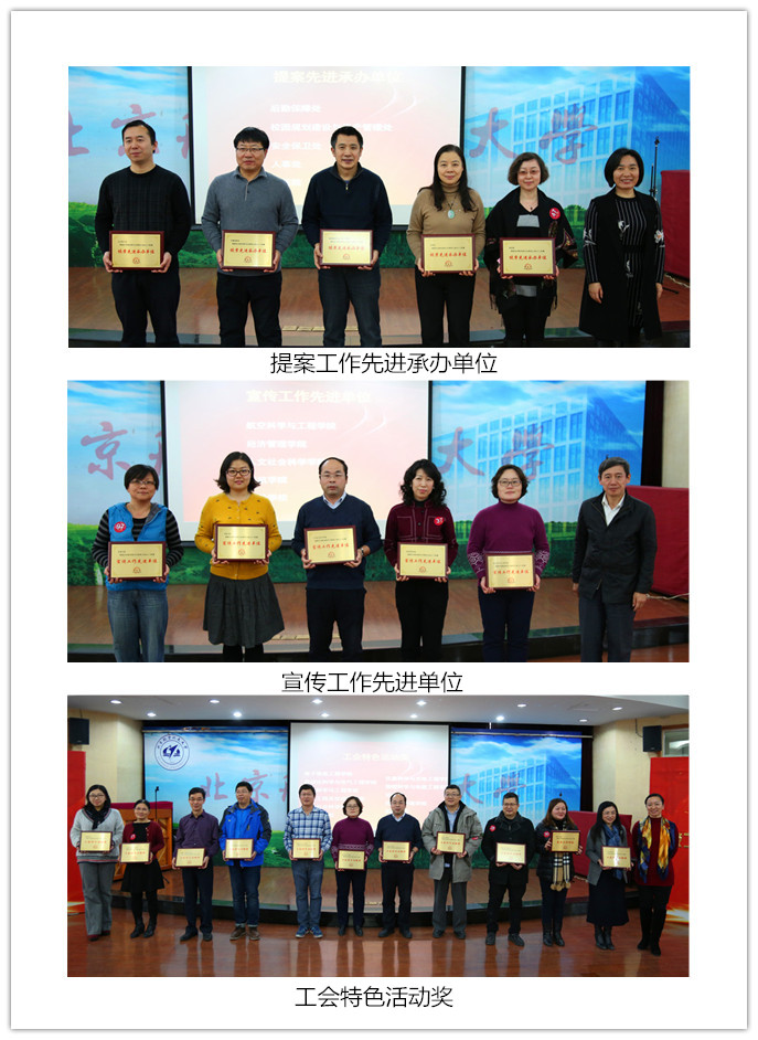 副校长魏志敏、校工会常务副主席程文浩等领导为获奖的单位及个人颁奖。航空学院工会荣获“工会活动竞赛奖第一名、工会工作组织奖一等奖、 工会特色活动奖、工会宣传工作先进单位”等多项奖励。