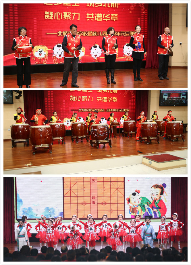 2017年12月29日下午,以“逐梦星空筑梦北航 凝心聚力 共筑华章”为主题的北航实验学校暨幼儿园2018年教职工元旦联欢会在中学部隆重举行。来自北航实验学校中学部、小学部、分校以及北航幼儿园的400多名教职员工及部分学生欢聚一堂,共同迎接新年的来临。