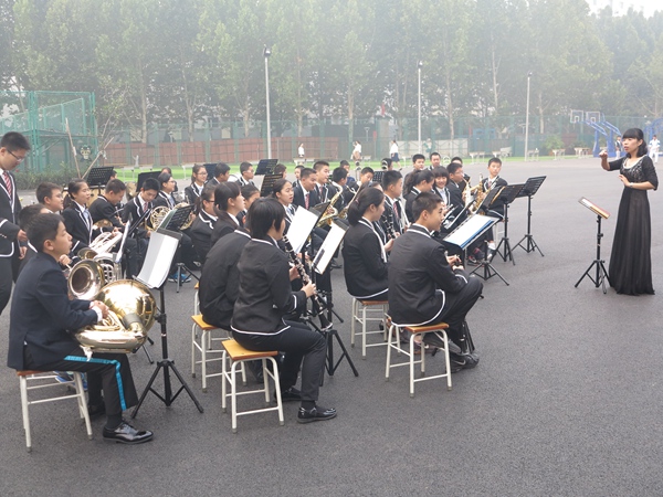 校园内彩旗飘飘,花团锦簇,校管乐团在庆典前奏响欢快的乐曲,喜迎领导、嘉宾以及附中老教师和校友们的到来。