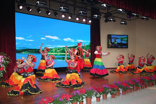 吴鹏程校长在致辞中深情回顾了附中悠久的办学历史、逐年提升的办学业绩,展望了学校未来的美好蓝图。校友代表、原附中男排队长陈松在讲话中表达了对母校的殷切祝福。由退休教师鹿老师指导、校友舞蹈队表演的《火红的日子》,点燃了在场所有人的热情。由高三(5)班金昕创作、就读于中国传媒大学播音主持系的校友张家齐同学朗诵的《点亮每一颗星》,吟咏出了对母校的眷恋。接着,校合唱团献上《感恩的心》和《哈利路亚》,传递出莘莘学子对附中的深情。在美妙的童声衬托下,青年教师合唱的《同一首歌》将演出现场的气氛推向高潮。