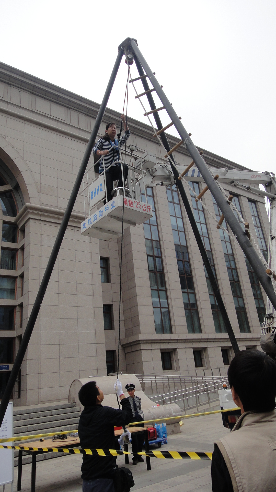 师生们在现场工作人员的指导下,亲自体验了”烟雾逃生、灭火器的使用、高空缓降逃生、火灾逃生绳结打法”等消防安全技能。鲍蕊、杨敏、张晓静、陈玉丽、吴志刚、徐亚妮等几位老师还亲自体验了高空缓降逃生,既感到紧张,又有些兴奋,大家一致为他们积极参与体验活动加油、助威。