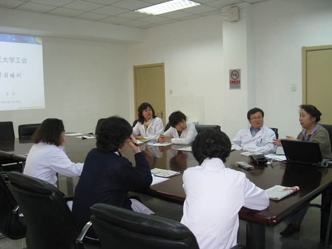 2014年3月18日中午,校医院邀请校工会原常务副主席秦蓉老师为校医院六名工会委员进行了工作培训。校医院党总支书记白致铭及副书记曹丽娟参加了此次培训。
