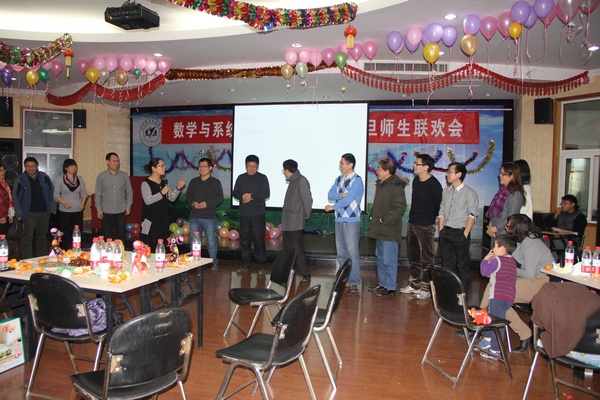 钟声敲响,新春起航,2014年1月8日下午2:00数学与系统科学学院在思源楼二层多功能厅举行了元旦“数之爱”师生茶话会,在笑声与歌声汇成的海洋里,在这个温馨和喜庆的日子里,林群院士、离退休党委书记白曌宇、校工会常务副主席程文浩、经管学院韩立岩教授(华罗庚班导师)、保卫处副处长梁恩和,中法工程师学院党委副书记田原与数学学院全体领教职工、部分离退休教师、学生代表共庆2014年新年到来。学院院长郑志勇教授介绍了学院在2013年在学科建设、人才培养、师资队伍、合作与交流方面取得成绩,表示所有的这些成就都凝聚着全院教职工的心血和汗水,希望在崭新的一年里,学院上下继续坚持“以人为本,科学发展”的基本理念,团结努力,攻坚克难,使得学院各项工作进一步走上新台阶,切实实现学院又好又快地健康发展。最后,郑志勇院长对全院教职工表达了真诚的新年祝愿。