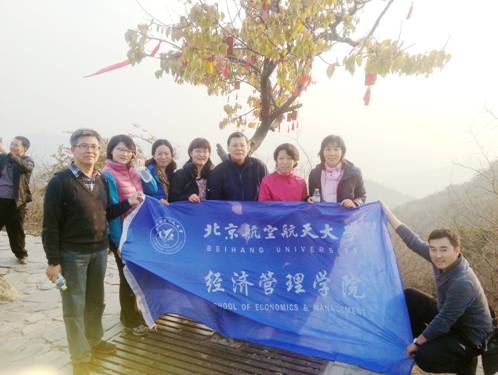 11月5日下午,在学院分党委书记刘志新和工会主席谢岚的带领下,经管学院15名教师参加了此次活动。香山高海拔557 米,一共有2152级台阶,是个健身和放松心情的好地方。一进公园,大家就迫不及待地沿着山路开始爬山了。我们的目标是山顶的香炉峰。大家兴致勃勃,边爬山、边交流、边拍照。不到一半的路程就已经大汗淋漓,但是大家都坚持着登上了山顶。站在山顶,迎着凉爽的微风、看着蓝蓝的天空和阳光照耀下的青山、红叶,每个人都感觉精神气爽,大家高兴地在山顶上拍照留念。