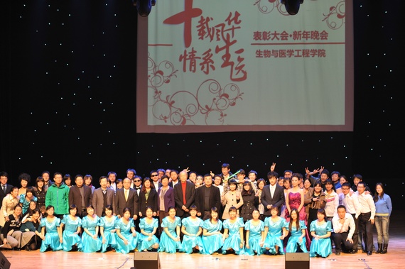 欢声笑语辞旧岁,继往开来迎新年。12月28日,“十载风华 情系生医”生物与医学工程学院总结表彰大会暨2013年新年晚会在晨兴音乐厅隆重举行。我校纪委书记、工会主席纪素菊、校离退休工作处李鸿耀处长、学生处董卓宁副处长、学院樊瑜波院长、韩慧瑜书记出席晚会,与校相关部处老师、部分退休教师、学院毕业院友、全院师生共同度过了这个难忘的夜晚。