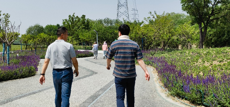 活动从沙河校区主楼F座出发,西行出学校,途经中国矿业大学、北京师范大学,在东沙河滨水公园合影留念,沿东沙河岸北行、经唯实国际文化交流中心,回到沙河主楼,全程约3公里。