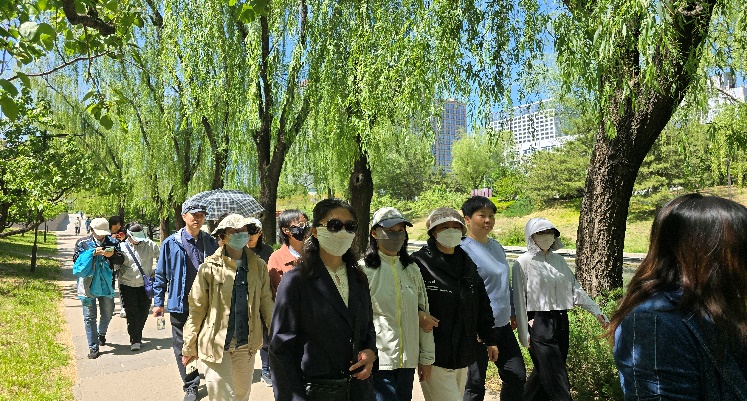 活动人数最多的路线是元大都遗址公园,公园静静流淌的小溪、春色满园的意境吸引着老师们。大家充分利用午休闲暇时间,释放排解各方面压力,怀着轻松愉快的心情,三五成群,彼此鼓劲,他们有的谈笑风生,有的交流健康知识,轻松的氛围里有点点小热闹。