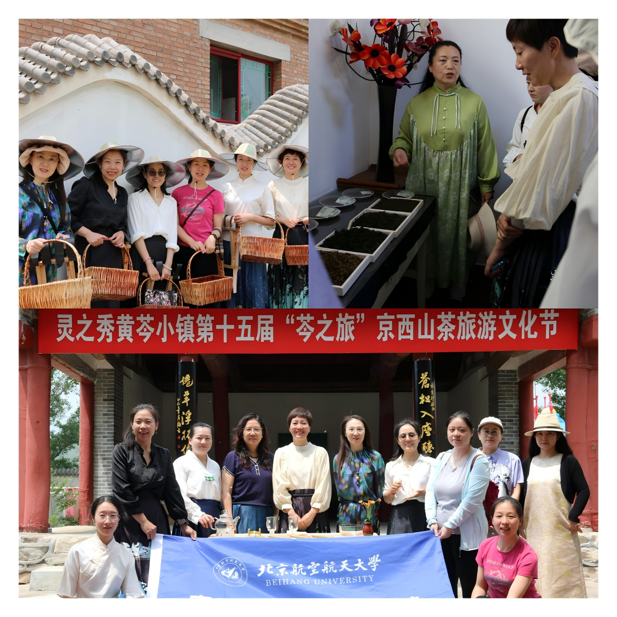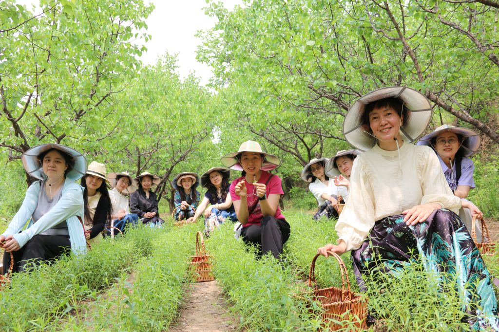 活动从学院老师们走进黄芩茶非遗工坊开始,北京灵之秀大村山茶种植专业合作社理事长张建民带领团队结合采茶小院的陈列,为大家介绍了古法制茶技艺。详细了解了开汤、冲泡、出汤等鉴茶步骤之后,老师们更加体会到小小杯中流转的不仅是茶叶,更是千年茶文化的积淀。在随后的登山采茶环节,张建民老师带领大家辨识黄芩、柴胡等中草药,科普茶文化与中医药的共生关系,老师们手持茶篮、头戴草帽,于簇簇黄芩间采下五月新绿的嫩芽儿,在实践中体悟茶文化的魅力。
