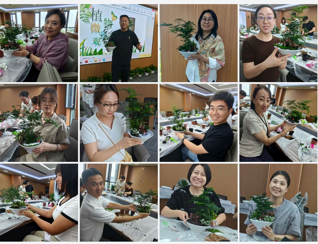 本次活动为DIY盆栽,教职工们分组协作,亲手挑选绿植、设计盆栽造型,并融入个人创意元素。活动尾声,教职工们展示了各自完成的盆栽作品。