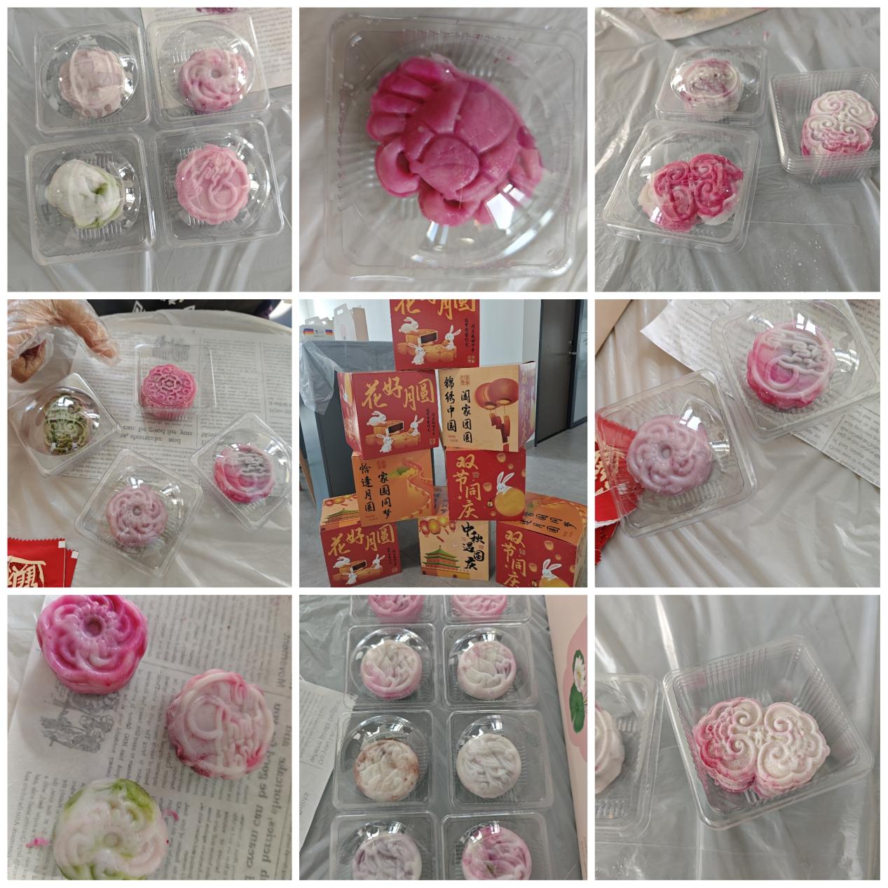 活动现场,专业老师详细讲解冰皮月饼的制作流程,逐一示范指导面团揉制、馅料分配及压模成型等步骤,方便参与职工轻松掌握相关技巧。教职工们热情投入,揉面团、包馅料、压模具,在欢声笑语中创作出造型各异的月饼,活动现场洋溢着团圆的喜悦。