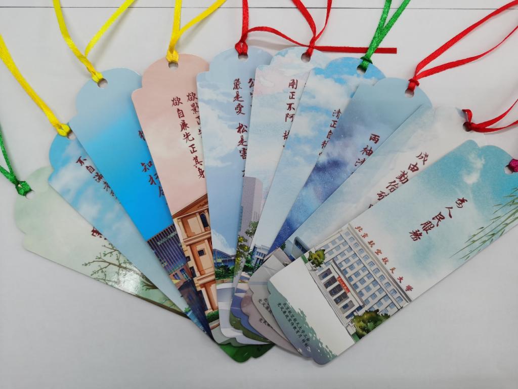 “为人民服务”“一身正气立身从教,两袖清风以德育人”“德才兼备,知行合一”……一条条廉言警句通过书签这个载体给广大教职工在这炎炎夏日送去缕缕清风。书签正面以“廉言警句”为主题,配以学校建筑手绘图片为背景;背面以红色为主色调,以百年党史的十个关键阶段为主题。这“廉”味十足,内容饱满的书签,可以放在办公桌上,夹在笔记本、书籍里,使广大教职工在潜移默化中学习党史,接受教育,成为教职工身旁的“警示牌”。廉政书签主题鲜明、通俗易懂、图文并茂,一行行警示的语句,提醒广大教职工在工作中严格按规矩办事,守住拒腐防线。