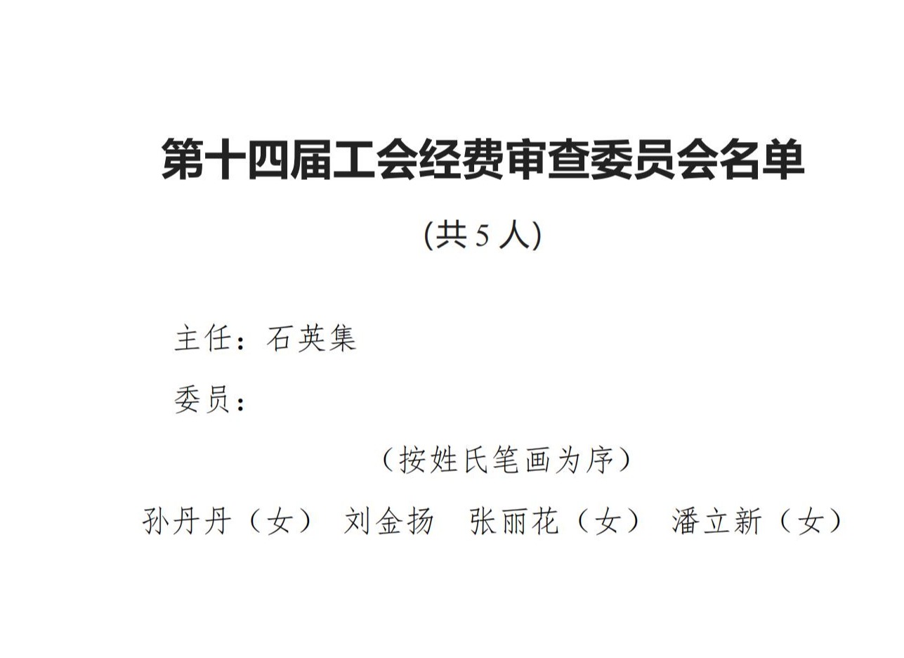 第十四届工会经费审查委员会名单